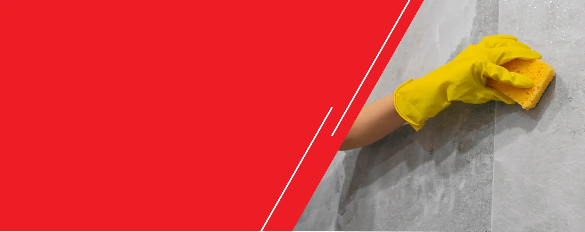 - Apply the solution on tiles and walls using a sponge or cloth.