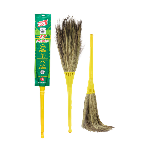 The 5T Punch Broom features a unique palm-shaped (five-finger spread) design that ensures fast and effortless sweeping, reducing both time and effort. The specially designed polymer handle allows easy reach into corners, making rooms neat and tidy.